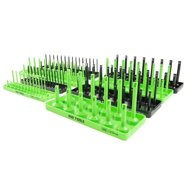 1 x Tavă din plastic verde pentru depozitarea cheilor tubulare metrice adânci și superficiale cu acționare de 1/4″. Etichetate de la 4,5 la 15 mm 1 x Tavă din plastic verde pentru depozitarea cheilor tubulare metrice adânci și superficiale cu acționare de 3/8″. Etichetate de la 6 la 20 mm 1 x Tavă din plastic verde pentru depozitarea cheilor tubulare metrice adânci și superficiale cu acționare de 1/2″. Etichetate de la 10 la 27 mm 1 x Tavă din plastic neagră pentru depozitarea cheilor tubulare metrice adânci și superficiale cu acționare de 1/4″. Etichetate de la 3/16″ la 5/8″ 1 x Tavă din plastic neagră pentru depozitarea cheilor tubulare metrice adânci și superficiale cu acționare de 3/8″. Etichetate de la 1/4″ la 1″ 1 x Tavă din plastic neagră pentru depozitarea cheilor tubulare metrice adânci și superficiale cu acționare de 1/2″. Etichetate de la 3/8″ la 1 1/4″