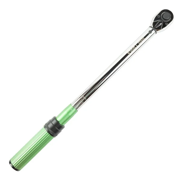 Cheie dinamometrică reglabilă cu cap de clichet bidirecțional. Indicator clar și ușor de citit, care, atunci când este setat, asigură aplicarea tensiunii corecte. Furnizată cu certificat de calibrare și cutie de depozitare. • Interval: 40 – 220 Nm (30 – 162 ft/lb) • Clichet bidirecțional • Acționare 1/2″ • Indicator ușor de citit • Certificat calibrat • Material Cr-Mo rezistent pentru acționare • Lungime: 540 mm (aproximativ 21″) • Cutie de depozitare • BS EN ISO 6789-1:2017