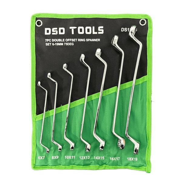 Set 7 chei inelare duble cotite la 75 grade (6-19mm) DS1816. Calitate profesională pentru chei și truse de chei. Trusă completă, livrare rapidă. Garanție 24 luni.
